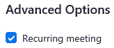 - Click the “Recurring Meeting” option which is the first item in Advanced Options.