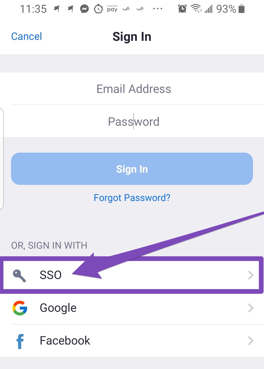 - Choose "SSO"