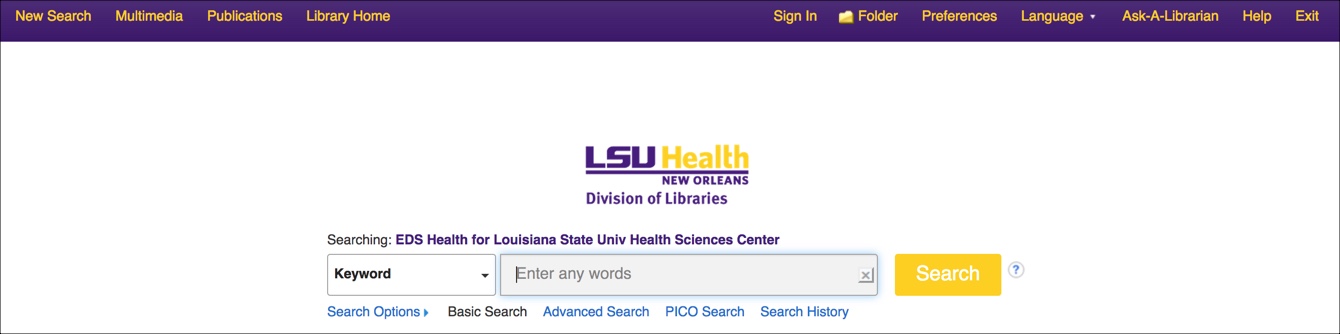 Many of you have already used the newly-released Discovery/EDS Health search tool made available last week. With the multitude of resources available from this service, there are also a number of options to perform a search. The types of searches available will depend on how you access it.
