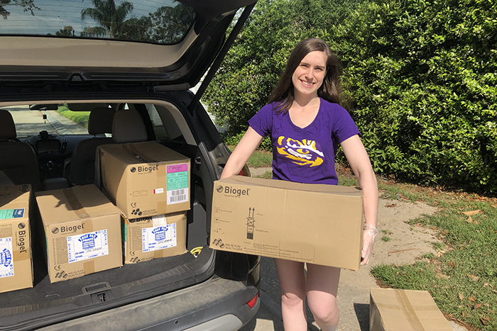 “I started this project because there are many health care workers putting their lives on the line to treat these COVID-19 patients,” says Abigail Olinde, a third-year LSU Health New Orleans medical student. “They are working day in and day out to protect our community and shouldn’t have to worry about the lack of PPE. With medical students out of the hospitals, we can continue to help our future co-workers by getting these individuals the supplies that they need.”