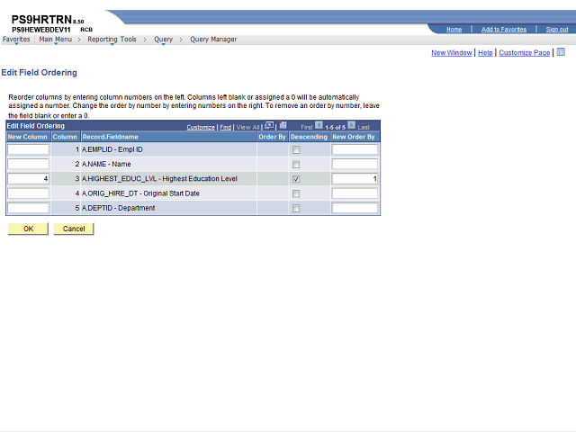 Enter "5" into the New Column field for ORIG_HIRE_DT..