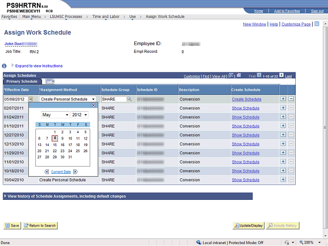 NOTE: A future pay period date must be selected. Schedules may not be adjusted for previous pay periods.