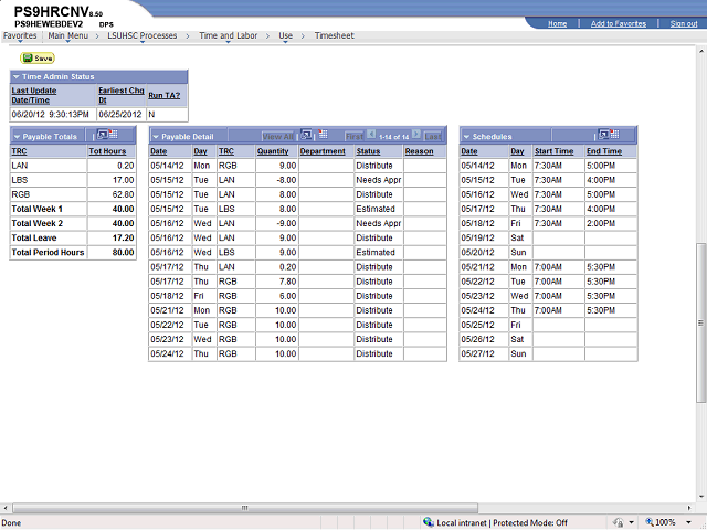 An employee was paid 8 hours of Annual Leave (LAN) on 05/15/12 and 9 hours of Annual Leave (LAN) on 05/16/12. The employee's time should have been charged to Sick Leave (LBS). A line was added to reverse the charge to LAN for 05/15 and 05/16. Another line was added for each day to charge the time to LBS.