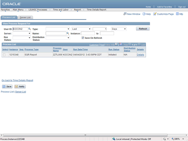 In the Process List, you want the Run Status = Success and the Distribution Status = Posted. Click the Refresh button to update the page until the appropriate results display.