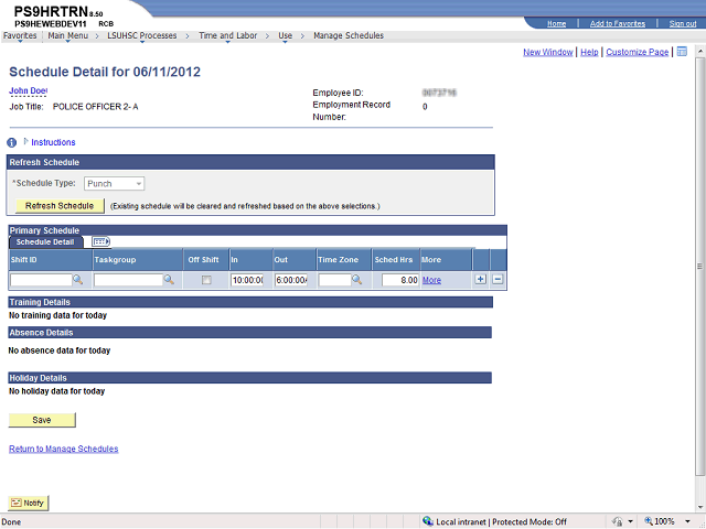 Enter the adjusted time into the IN and OUT fields to adjust the schedule.