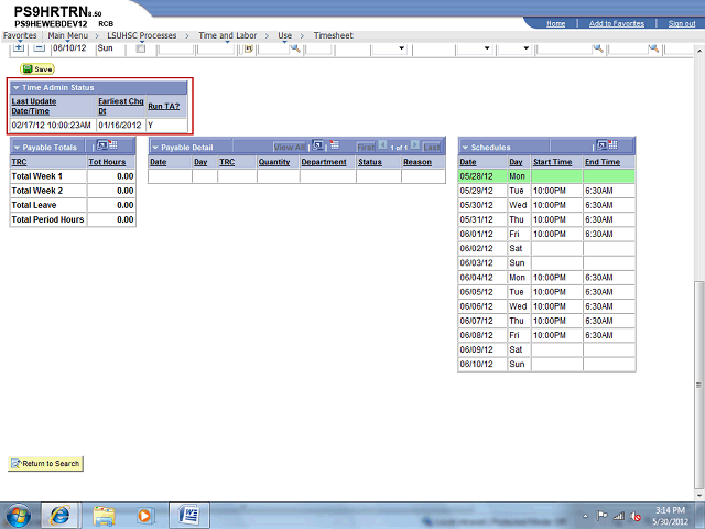 Last Update Date/Time: Displays last date and time The Time Admin Process ran.