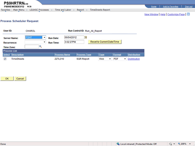 If the Server Name is PSNT, then click the OK button to continue.
