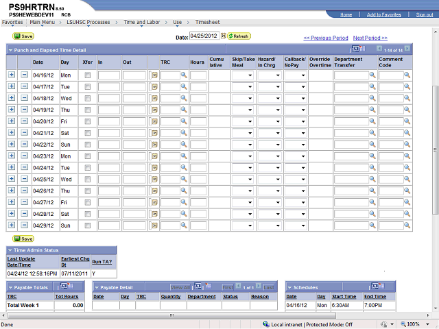 Note: Only Leave and other Manual Edits to the timesheet (i.e. missed punches, On-Call, TRC, etc.) will need to be added by the Timekeeper if the employee is paid from schedule.