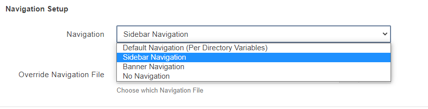 From the navigation dropdown menu, users can choose what type of navigation to display in a page.